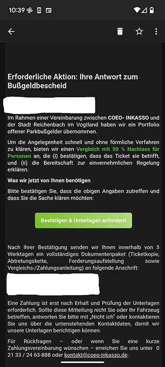 Die Stadtverwaltung Reichenbach wurde informiert, dass Bürgerinnen und Bürger durch ein Inkassobüro per E-Mail kontaktiert wurden, die darüber informieren, dass sie im Namen der Stadtverwaltung fällige Parkgebühren oder Ordnungsgelder beitreiben.