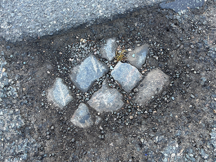 Übrigens: 2025 dauerte die Schlaglochverfüllung bis in den Dezember an. Dabei wurden ca. 63 Tonnen Asphalt verbaut.
